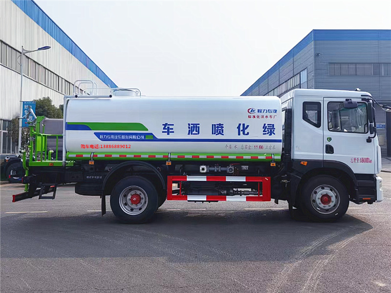 | 上裝配置:罐體采用國標Q235碳鋼板材制作,罐體厚度4mm,前后封頭5MM加厚型,罐體容積14-15噸(14~15方),東風多利卡灑水車質量成熟可靠,設計先進合理,比同類灑水泵吸程遠、壓力大、使用壽命長,可泵進泵出。前沖、后灑、側噴,消防栓接口,帶后工作平臺及綠化灑水高炮(可全方位旋轉,可連續調成直沖狀、大雨、小雨、毛毛雨),水位計,兩根等長輸水管,其余標配。 |